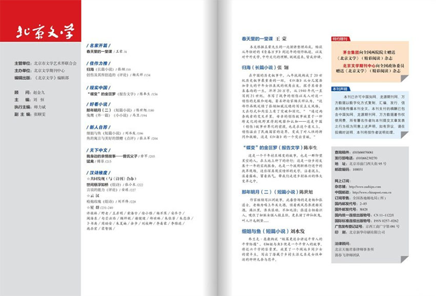 《北京文學》雜志是一本追求時代感、現(xiàn)實感、大眾性和可讀性的文學刊物,它本著為讀者服務的宗旨,旨在為廣大讀者提供高質(zhì)量的文學作品和豐富的閱讀體驗。