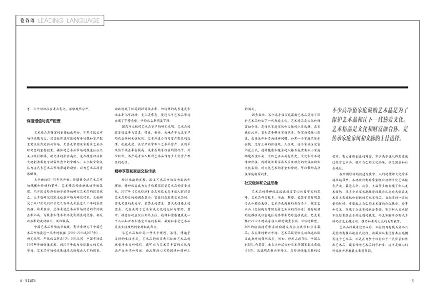 《財(cái)富管理》雜志作為一本內(nèi)容豐富、專(zhuān)業(yè)權(quán)威、實(shí)用性強(qiáng)、人文關(guān)懷并存的財(cái)富管理雜志,無(wú)論是追求財(cái)富增長(zhǎng)的投資者,還是關(guān)心社會(huì)責(zé)任的公民,都可以在雜志中找到自己所需的財(cái)富智慧和品質(zhì)生活的引領(lǐng)。