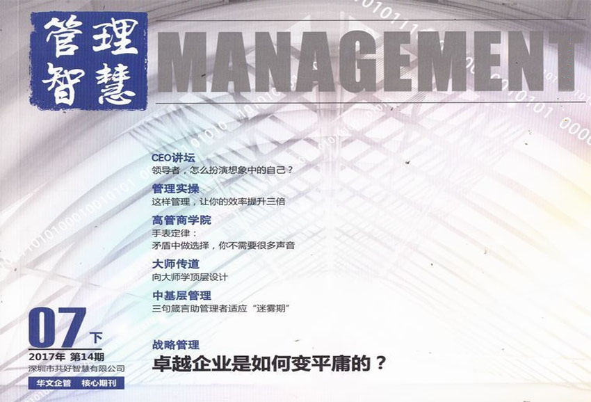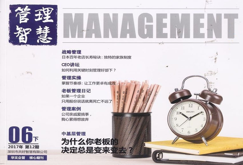 《管理智慧》雜志主要面向中國(guó)企業(yè)和管理者,通過提供最前沿的管理理念,分享優(yōu)秀企業(yè)的成功經(jīng)驗(yàn)和管理實(shí)踐,幫助中國(guó)企業(yè)解決日常管理中遇到的各類問題,啟迪中國(guó)企業(yè)家的管理智慧。