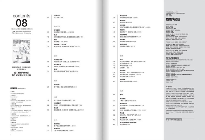 《婚姻與家庭》雜志是一本專注于探討婚姻與家庭主題的期刊,致力于為讀者提供深刻而全面的婚姻與家庭相關(guān)內(nèi)容。雜志以其深刻而富有哲理的思想、貼心而具有人文關(guān)懷的情操、樸實(shí)而打動人心的深情、清新而求真的文風(fēng)而吸引了百萬讀者。這本雜志是一個寶貴的閱讀資源,為讀者提供了對婚姻與家庭的思考、指導(dǎo)和啟發(fā)。