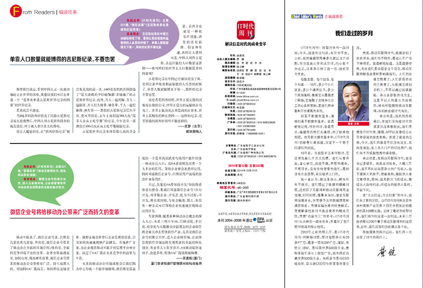 《IT時(shí)代周刊》是一本深度解讀IT行業(yè)的專業(yè)雜志,它以其專業(yè)的水準(zhǔn)、獨(dú)到的觀點(diǎn)和深入的分析,贏得了讀者的喜愛(ài)和認(rèn)可。它不僅是中國(guó)IT界的焦點(diǎn)訪談和新聞?wù){(diào)查,也是中國(guó)IT界的重要聲音。
