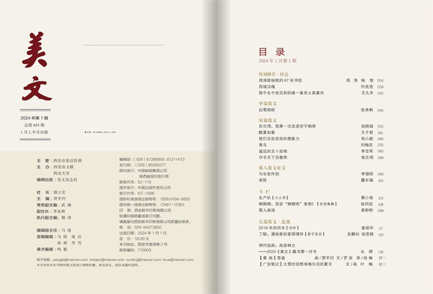 《美文》雜志是一本以散文為主要內(nèi)容的文學(xué)刊物,旨在展示當(dāng)代散文寫(xiě)作的新風(fēng)貌,發(fā)掘并推廣優(yōu)秀的散文作品。該雜志由一支充滿激情和創(chuàng)造力的編輯團(tuán)隊(duì)組成,他們精心挑選、編輯各種類(lèi)型的散文,努力打造出一本內(nèi)容豐富、質(zhì)量上乘的文學(xué)刊物。