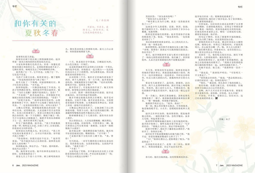 《南風》雜志是一本富有情感和幻想的青春文學雜志,以其獨特的設(shè)計風格和對青春四季激情的張揚而著名。每期雜志都會呈現(xiàn)不同季節(jié)下的心情和風景,帶給讀者形形色色、生動有趣的資訊和故事。