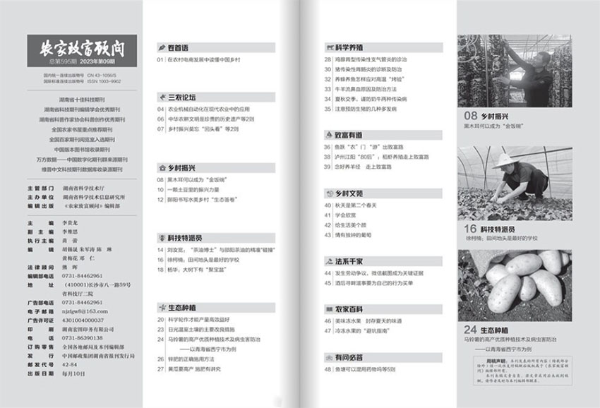 雜志介紹農村創(chuàng)業(yè)項目和就業(yè)機會,為讀者提供創(chuàng)業(yè)經驗分享和就業(yè)指導,幫助他們實現(xiàn)自我價值;提供農村金融政策與金融產品信息,介紹農業(yè)領域的投融資案例,引導讀者正確運用金融工具支持農業(yè)發(fā)展;解讀相關農村政策法規(guī),幫助讀者了解政策導向、落實細則,引導他們依法經營,獲得政策支持;介紹農業(yè)科技創(chuàng)新成果與應用案例,幫助讀者了解最新農業(yè)科技趨勢,提高農業(yè)生產效率;分享農產品加工技術和市場營銷策略,幫助讀者實現(xiàn)農產品的增值和銷售增收,拓展銷售渠道。
