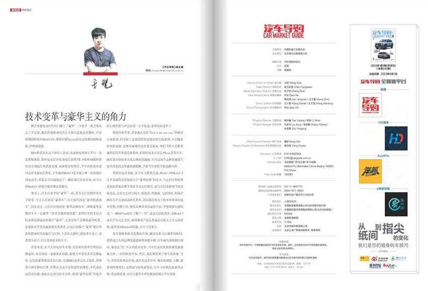 《汽車導(dǎo)購》雜志作為一本深受汽車愛好者、潛在購車者和專業(yè)人士喜愛的權(quán)威汽車指南,以獨(dú)特的視角和專業(yè)的態(tài)度,為讀者提供全方位的汽車導(dǎo)購和用車指南。雜志一直致力于傳遞汽車行業(yè)的最新動(dòng)態(tài),解析汽車市場的熱點(diǎn)話題,以及提供專業(yè)的購車建議,內(nèi)容涵蓋了各種車型、品牌和價(jià)格區(qū)間,旨在滿足不同讀者的個(gè)性化需求。雜志的團(tuán)隊(duì)由一群熱愛汽車、精通汽車行業(yè)的專業(yè)人士組成,他們憑借豐富的經(jīng)驗(yàn)和專業(yè)知識,為讀者提供權(quán)威的汽車評價(jià)、購車建議以及用車技巧,始終堅(jiān)持真實(shí)、客觀、務(wù)實(shí)的原則,力求為讀者帶來最具參考價(jià)值的汽車信息。