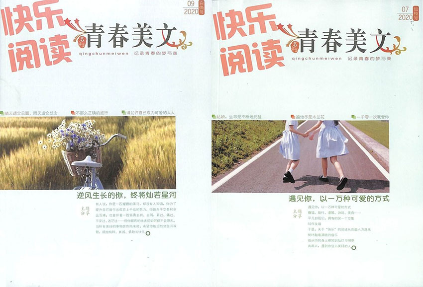《快樂(lè)閱讀·青春美文》雜志是一本優(yōu)美靈動(dòng)的雜志,以其真實(shí)自然的情感表達(dá)和觸動(dòng)人心的文筆而深受讀者喜愛(ài)。無(wú)論是年輕的讀者還是青春期的讀者,每個(gè)人都能在雜志中找到自己喜歡的文章,它成為了每個(gè)青春期讀者的心靈老師。