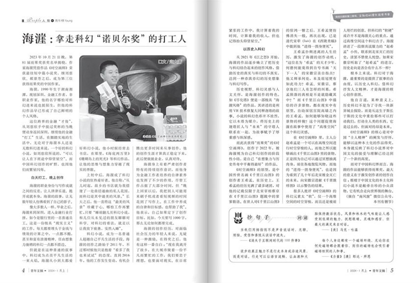 《青年文摘》是一本深受全國青少年喜愛的文摘類綜合刊物,旨在為青少年打造一個(gè)豐富生動(dòng)、健康向上的精神空間。雜志始終堅(jiān)守著為青少年提供高質(zhì)量閱讀體驗(yàn)的使命,成為了他們成長(zhǎng)道路上不可或缺的一部分。雜志內(nèi)容豐富多樣,涵蓋了文學(xué)、歷史、哲學(xué)、藝術(shù)、科學(xué)等多個(gè)領(lǐng)域,每期雜志都會(huì)精心挑選一系列具有深度、啟發(fā)性和趣味性的文章,旨在激發(fā)青少年的閱讀興趣,拓寬他們的知識(shí)視野,通過閱讀這些名篇佳作,青少年可以深入了解不同領(lǐng)域的知識(shí),培養(yǎng)自己的思辨能力和審美能力,為未來的學(xué)習(xí)和生活打下堅(jiān)實(shí)的基礎(chǔ)。
