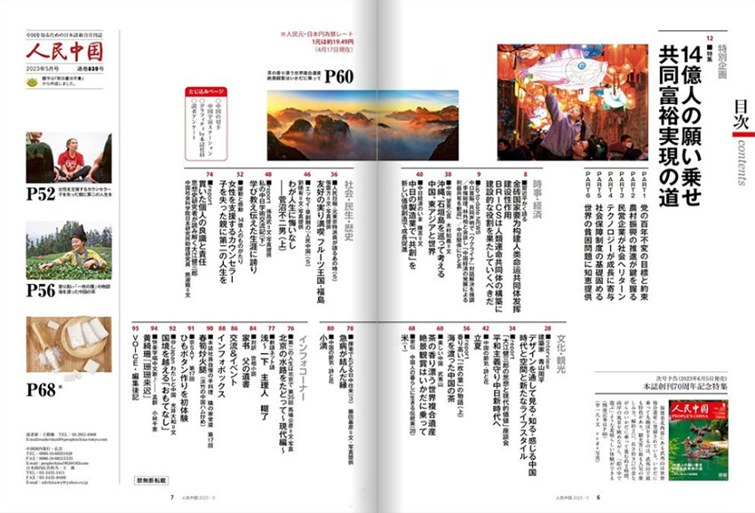 《人民中國(日文版)》雜志被譽(yù)為增進(jìn)兩國人民友誼的橋梁、了解中國國情的教科書。雜志的使命是向日本讀者展示中國的政治、經(jīng)濟(jì)、文化、科技等方面的全面報(bào)道和分析,以便他們更好地了解中國的社會(huì)進(jìn)步、發(fā)展成就和國際影響。它提供了一個(gè)了解中國國情、深入了解中國社會(huì)的窗口,為日本讀者提供了豐富的信息和見解。