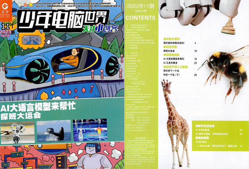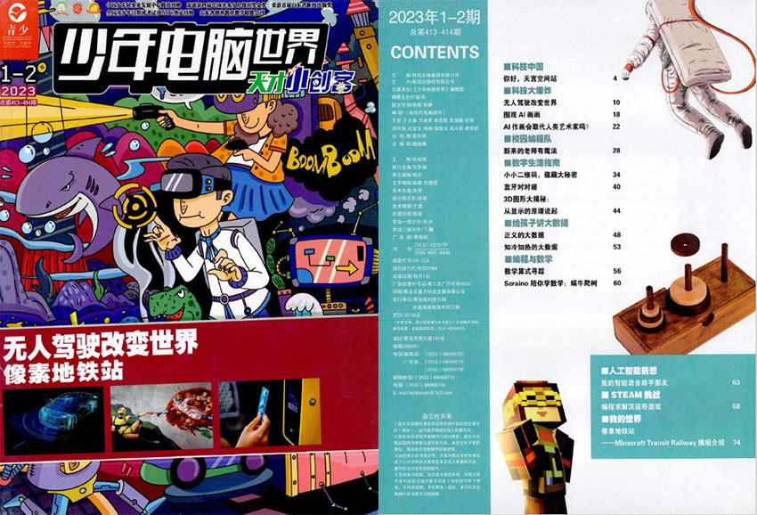 除了常規(guī)的科技內(nèi)容,少年電腦世界還特別關(guān)注創(chuàng)意性的主題,推出了一系列的專題報道,以及有關(guān)項目和創(chuàng)業(yè)的文章,鼓勵年輕人發(fā)揮創(chuàng)造力,嘗試新的科技應(yīng)用,并讓他們了解到科技行業(yè)的機(jī)遇和挑戰(zhàn)。雜志還會推出讀者投稿和交流分享的專欄,鼓勵年輕讀者分享他們的創(chuàng)意和科技體驗,為大家提供了一個展示自己的平臺。