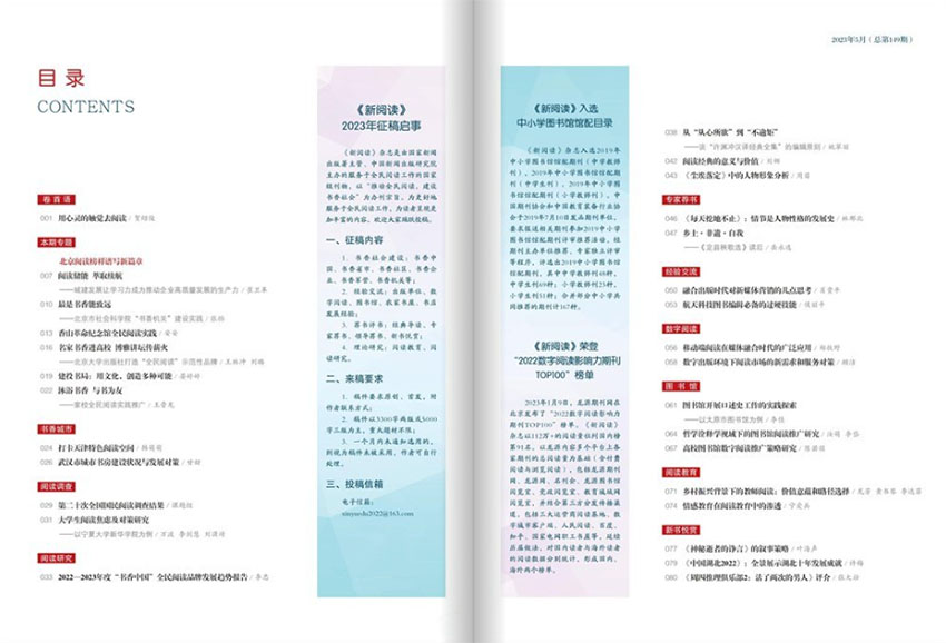 《新閱讀》雜志是一本為廣大讀者提供優(yōu)質(zhì)閱讀內(nèi)容和指導(dǎo)的期刊,通過精選文章、閱讀指導(dǎo)和互動(dòng)活動(dòng),致力于推動(dòng)全民閱讀運(yùn)動(dòng),弘揚(yáng)閱讀文化。它是讀者探索知識(shí)、享受閱讀樂趣的好伙伴和指南。