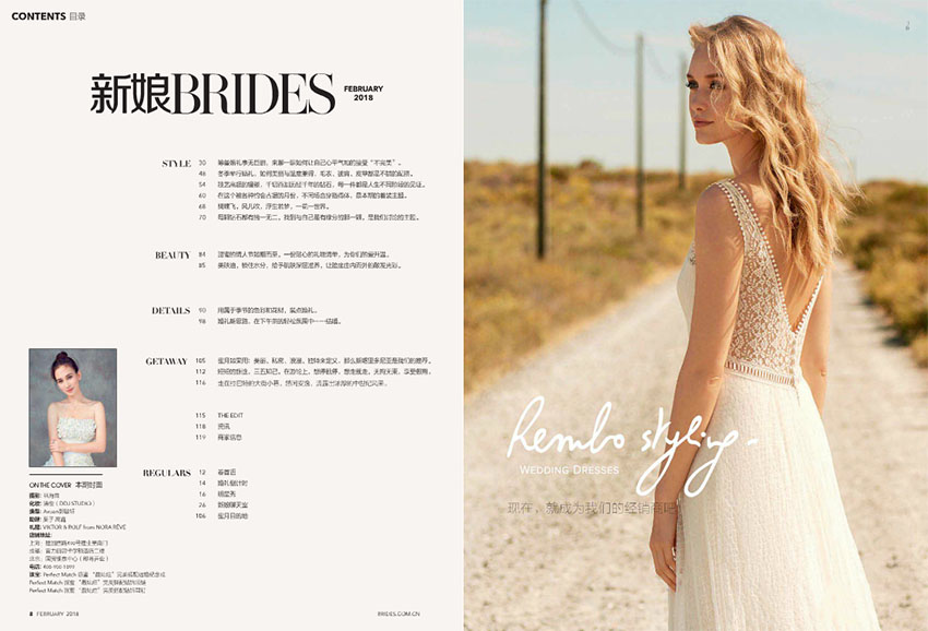 《新娘》雜志是一本專注于婚禮文化和時尚的雜志,被譽(yù)為準(zhǔn)新娘的閨中蜜友,是完美新娘的禮物。該雜志的使命在于傳遞國際婚禮文化資訊、引領(lǐng)新婚時尚潮流、促進(jìn)婚慶行業(yè)的發(fā)展。