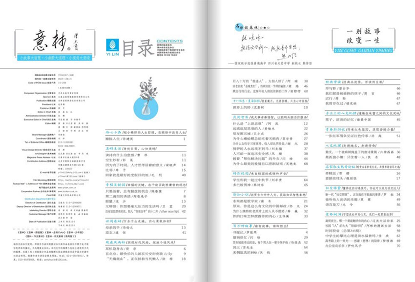 《意林》雜志是一本以其獨(dú)特的內(nèi)容風(fēng)格和現(xiàn)實溫暖的價值觀深受讀者喜愛的文學(xué)期刊。創(chuàng)刊多年來,它始終堅持用富有哲理的故事、寓言以及真實的生活經(jīng)歷來觸動讀者的心靈,傳播勵志和人文關(guān)懷的價值觀。雜志注重現(xiàn)實與溫暖的融合,它選取的故事和寓言往往源于生活,卻又不乏深度和智慧。這些故事用生動的語言描繪了人間的冷暖、人性的善惡,使讀者在閱讀中能夠產(chǎn)生共鳴,感受到生活的真實與美好。同時,雜志也善于從生活中提煉出深刻的哲理,通過細(xì)膩的文字展現(xiàn)給讀者,使讀者在閱讀中得到啟迪和感悟。