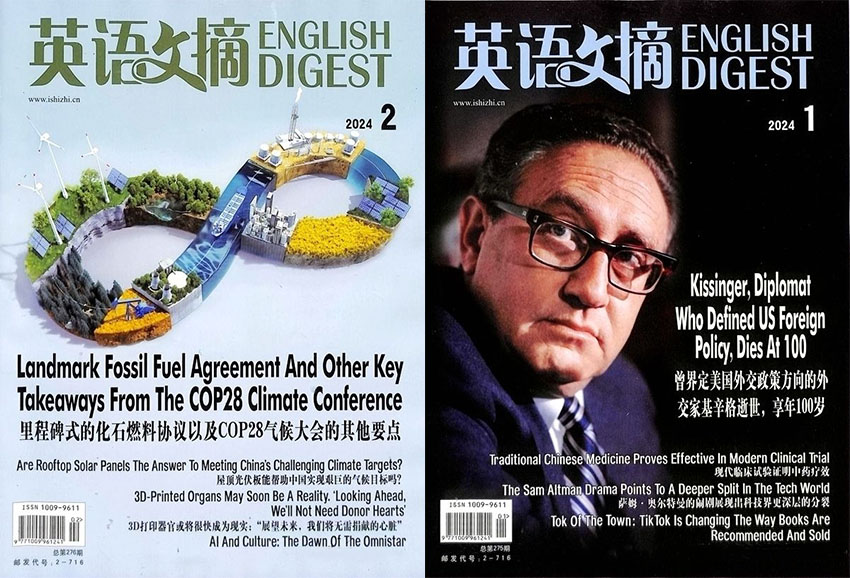 《英語文摘》雜志是一本致力于提高讀者英語水平、拓展知識領(lǐng)域的高質(zhì)量雙語學習雜志。它集知識性、實用性和趣味性于一體,為廣大英語學習者提供了一個優(yōu)質(zhì)的學習資源。雜志內(nèi)容涵蓋豐富多樣的主題,包括文化、歷史、科技、健康、商業(yè)等領(lǐng)域,每期均由專業(yè)編輯團隊精心策劃、編輯,旨在為讀者帶來最新、最有趣的內(nèi)容。