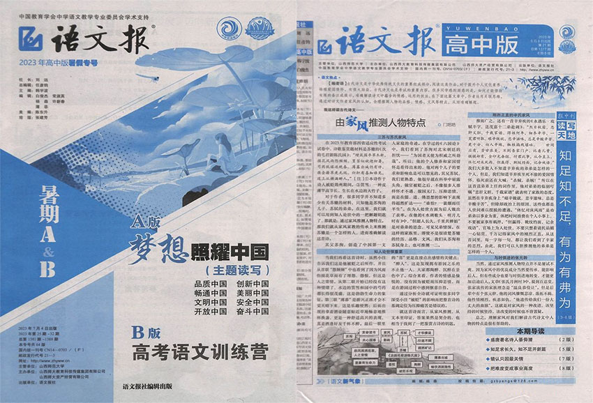 《語文報》是一份專注于語文教育和文化傳承的優(yōu)秀雜志,一直堅持著大語文的理念,這一理念意味著不僅僅關(guān)注語文學(xué)科的基礎(chǔ)知識,更要注重培養(yǎng)學(xué)生的語文綜合素養(yǎng)。雜志相信,語文作為一門綜合性的學(xué)科,應(yīng)該注重語言文字的運(yùn)用、文化的理解和思維的培養(yǎng)。因此,該雜志的宗旨便是傳播語文知識、促進(jìn)語文教改、弘揚(yáng)祖國優(yōu)秀文化、提高全民族的文化素養(yǎng)。