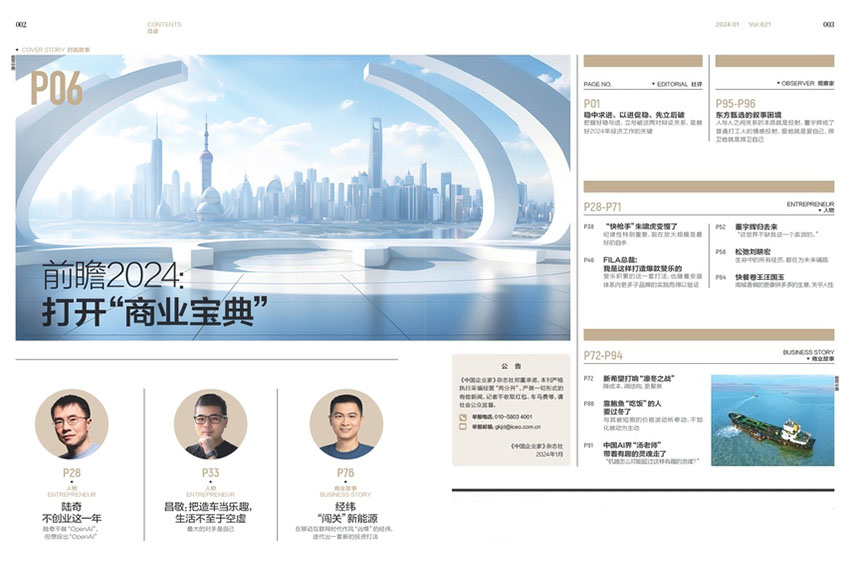 雜志以深度報(bào)道、專業(yè)分析和前瞻視角著稱,涵蓋經(jīng)濟(jì)、商業(yè)、管理、創(chuàng)新等多個(gè)領(lǐng)域。在雜志的版面中,讀者可以看到對(duì)國(guó)內(nèi)外經(jīng)濟(jì)形勢(shì)、產(chǎn)業(yè)動(dòng)態(tài)、企業(yè)管理實(shí)踐、商業(yè)趨勢(shì)的深入解讀,以及對(duì)企業(yè)家成功經(jīng)驗(yàn)、智慧分享和價(jià)值觀念的探討。作為商業(yè)領(lǐng)域的權(quán)威媒體,雜志不僅關(guān)注企業(yè)的經(jīng)營(yíng)管理和市場(chǎng)競(jìng)爭(zhēng),更注重企業(yè)家的人文關(guān)懷、社會(huì)責(zé)任和社會(huì)影響力。通過報(bào)道企業(yè)家的創(chuàng)業(yè)故事、成功經(jīng)驗(yàn)和價(jià)值觀念,激勵(lì)更多的創(chuàng)業(yè)者勇于擔(dān)當(dāng)、創(chuàng)新發(fā)展,推動(dòng)中國(guó)經(jīng)濟(jì)的健康發(fā)展和社會(huì)進(jìn)步。