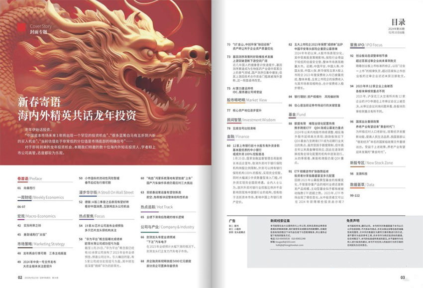 作為中國證券市場的見證者和推動者,雜志以其權(quán)威性和專業(yè)性贏得了讀者的信任和認(rèn)可。雜志擁有一支由知名財經(jīng)評論員、投資專家和市場分析師組成的優(yōu)秀編輯團(tuán)隊,他們深入市場一線,及時準(zhǔn)確地捕捉到市場的最新動向和脈搏,為讀者呈現(xiàn)豐富多彩的財經(jīng)資訊和深度報道。雜志的辦刊理念是眼光即價值,這一理念體現(xiàn)在雜志的每一期報道和分析中。雜志始終堅持客觀公正、質(zhì)量至上的原則,力求為讀者呈現(xiàn)真實(shí)、可信的財經(jīng)信息,幫助讀者把握投資機(jī)會,規(guī)避風(fēng)險。