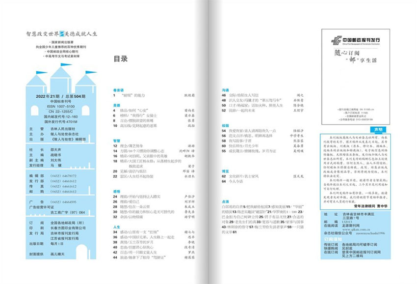 《做人與處世》雜志不僅是一本關(guān)注孩子成長的讀本,更是一本傳遞美德智慧的期刊,致力于為讀者提供沉淀思考、啟發(fā)智慧的精神食糧,引領(lǐng)人們在日常生活中做一個更好的人。