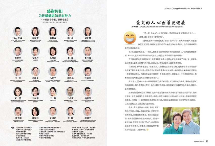 《自我保健》雜志將始終堅持提供高質(zhì)量的內(nèi)容,成為讀者健康生活的可靠伴侶,相信通過努力向讀者傳遞實用、科學(xué)、可靠的健康信息,能夠幫助更多人改善生活方式,提高生命質(zhì)量。無論是年輕人還是老年人,無論是白領(lǐng)還是家庭主婦,每個人都應(yīng)該關(guān)注自己的健康,照顧好自己和家人的身心健康。